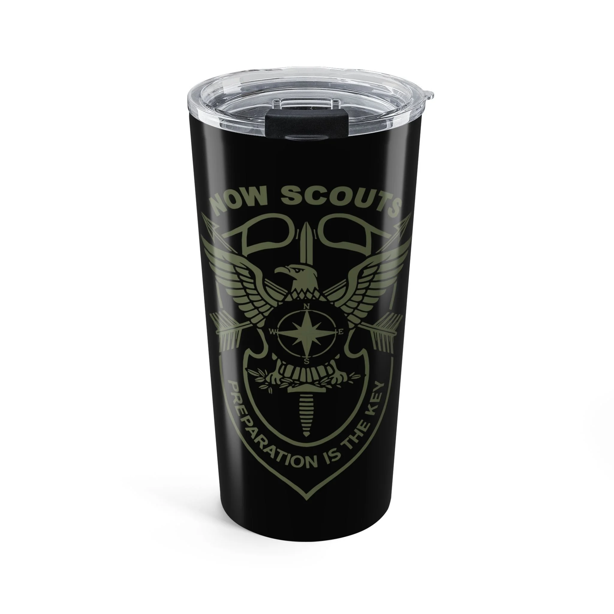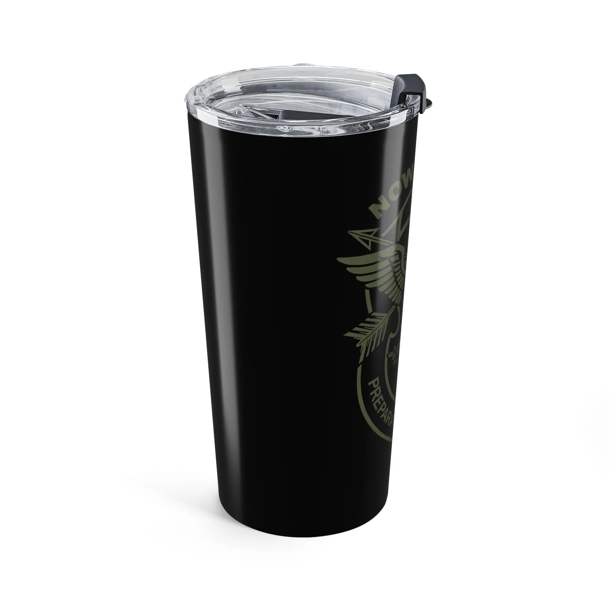.: Vacuum insulated steel body with a clear push on lid with a rubber gasket